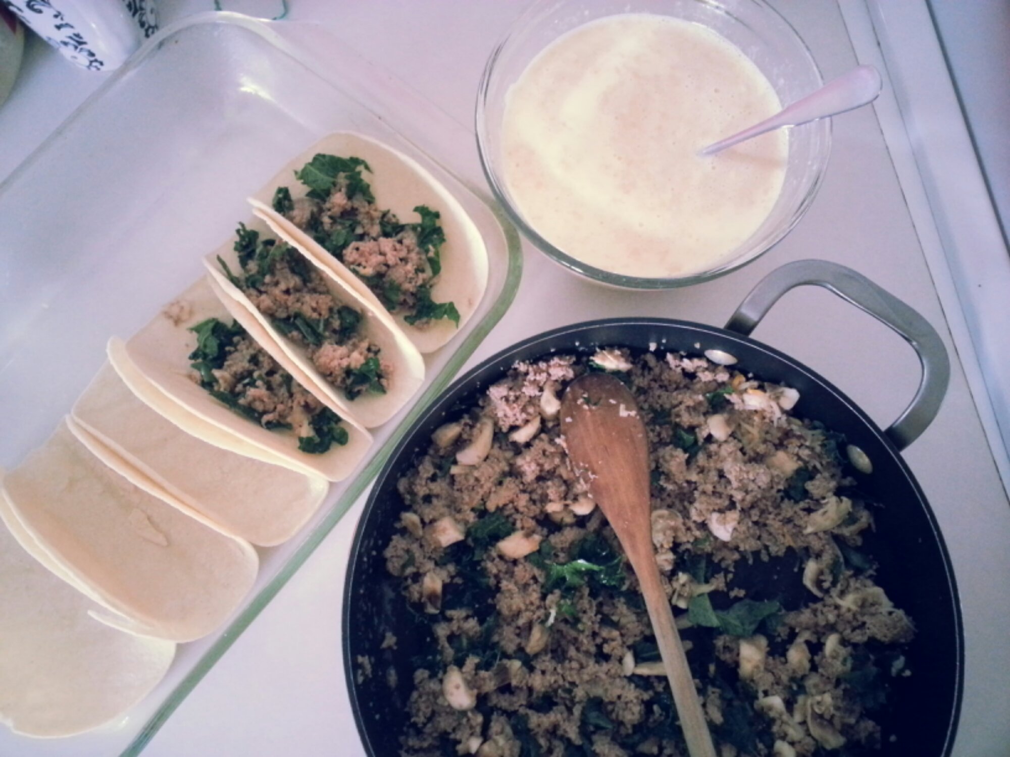 (I started making little burritos, don’t do this, the corn tortillas fall apart)