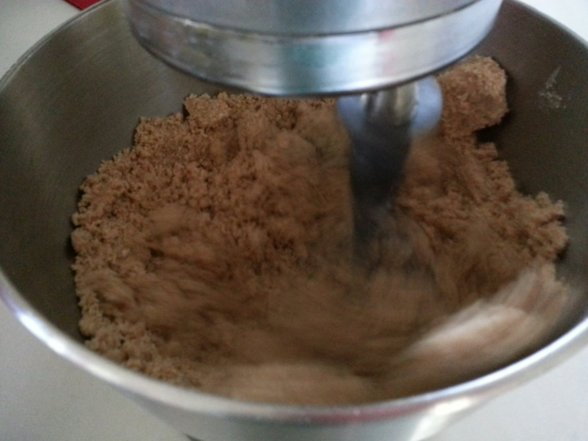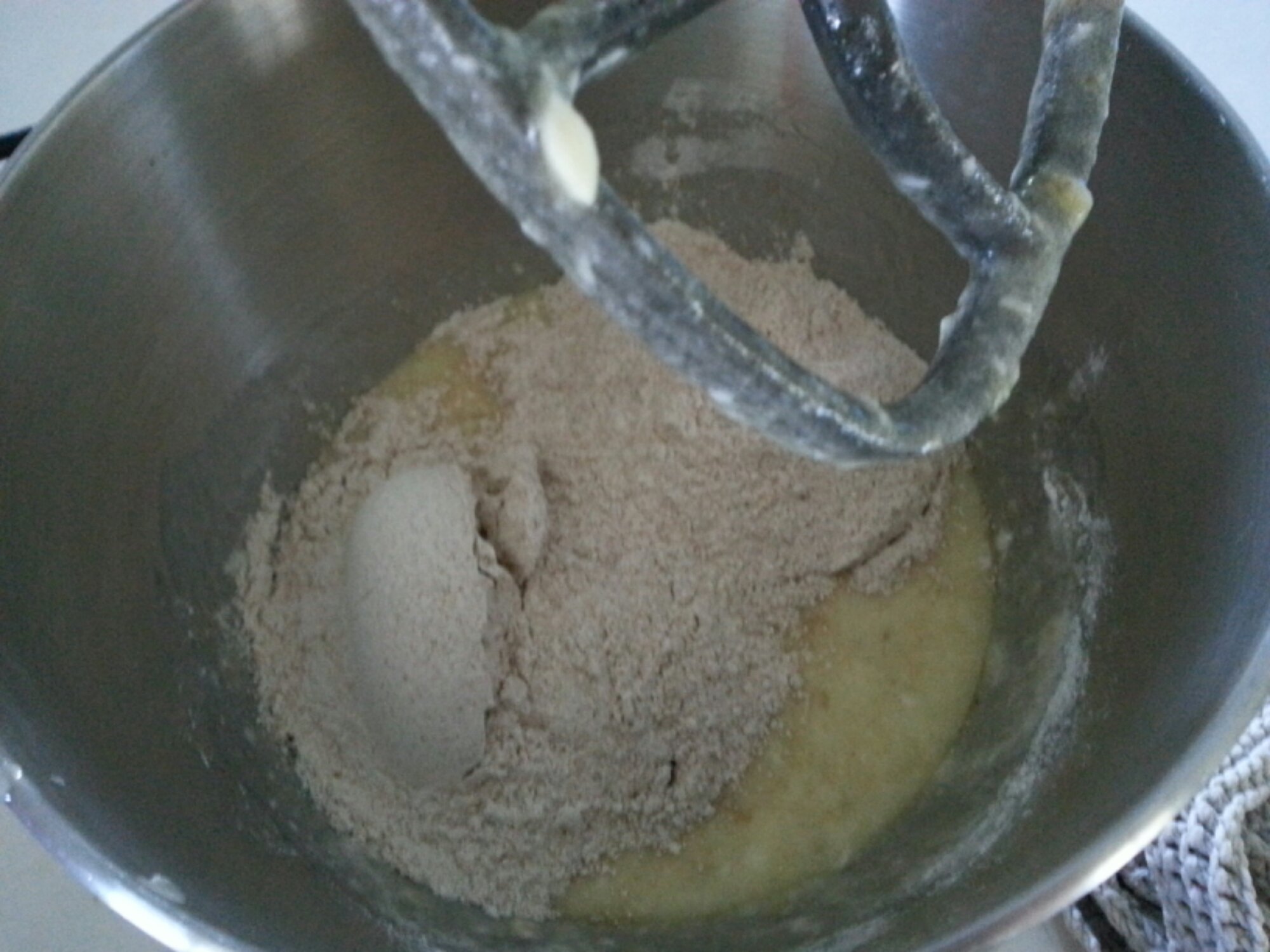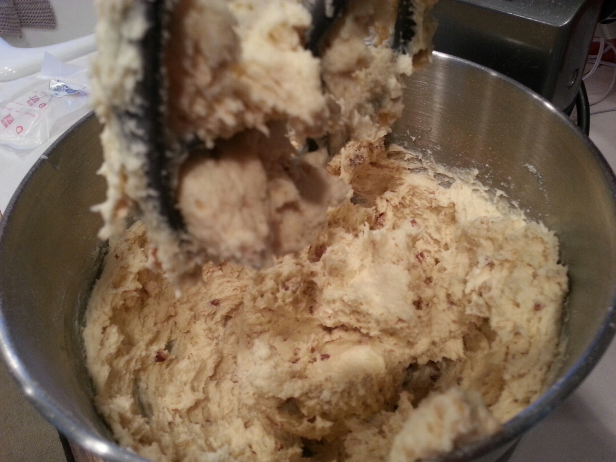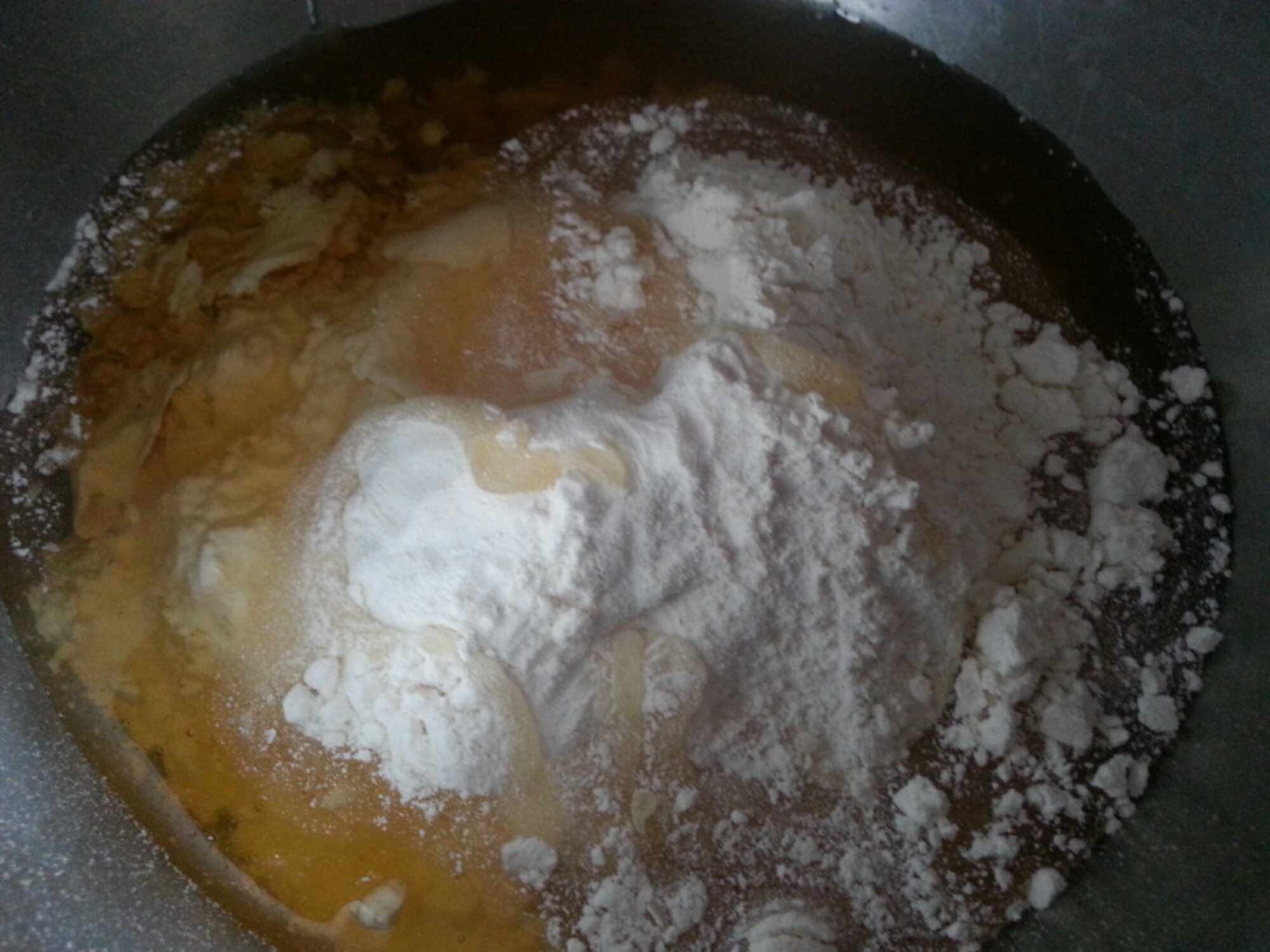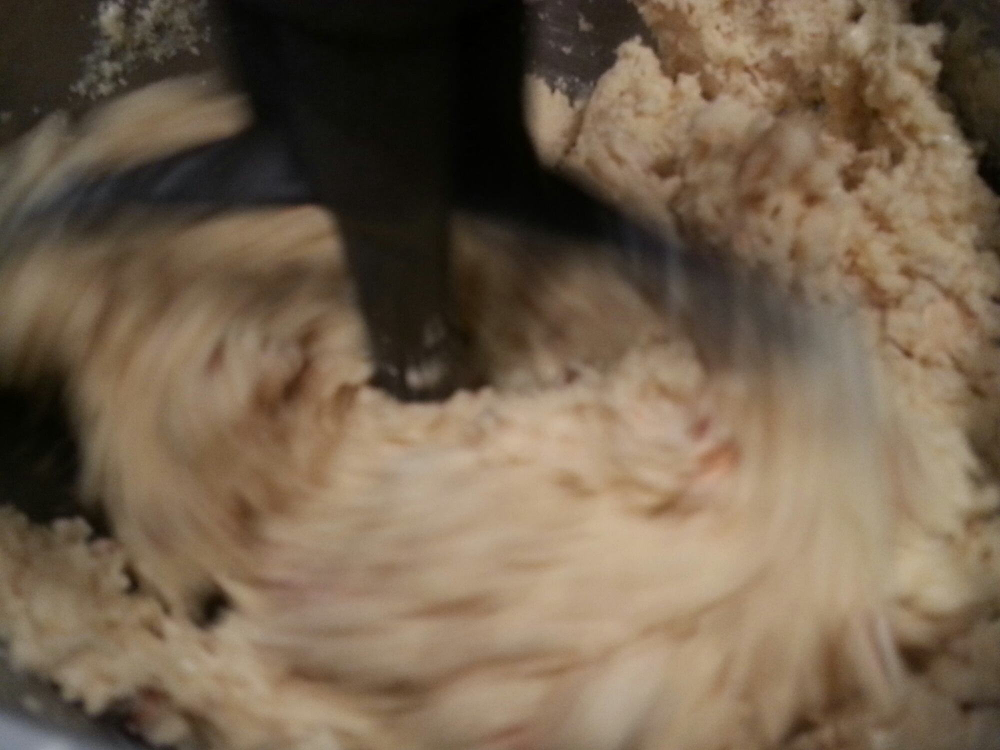 Add all dry ingredients: flour, salt, baking powder and soda, cinnamon, nutmeg, and allspice. Cream well.