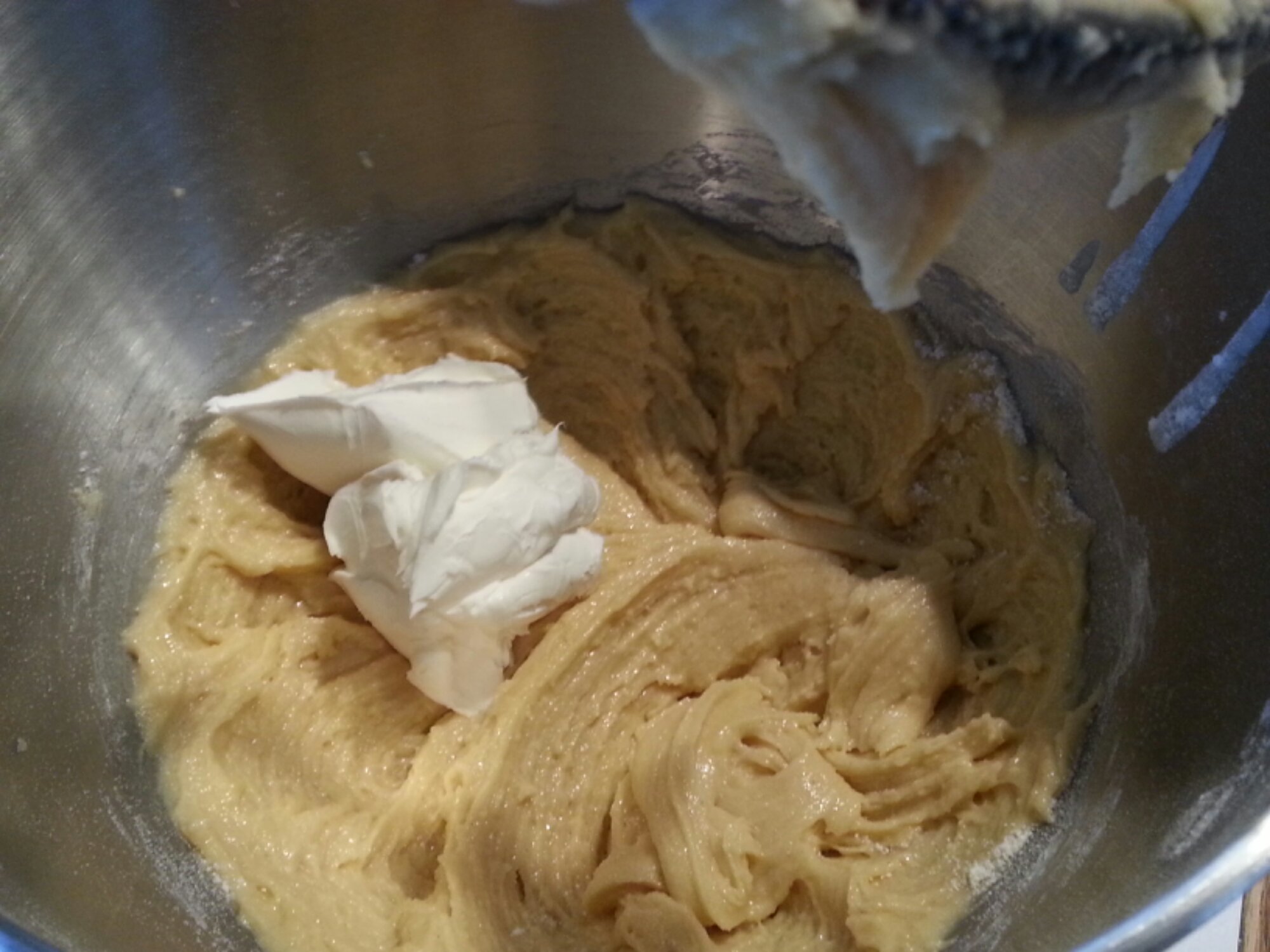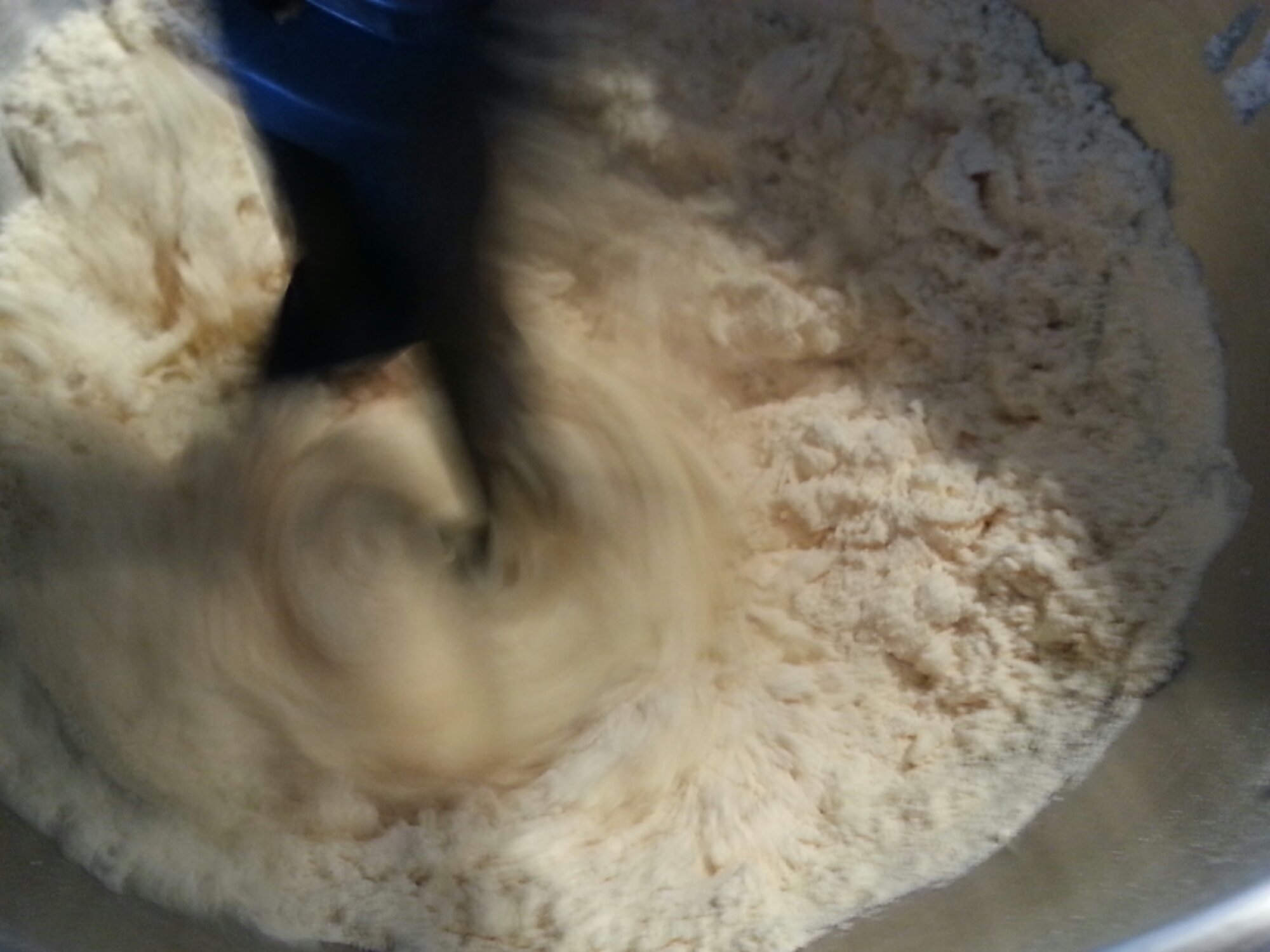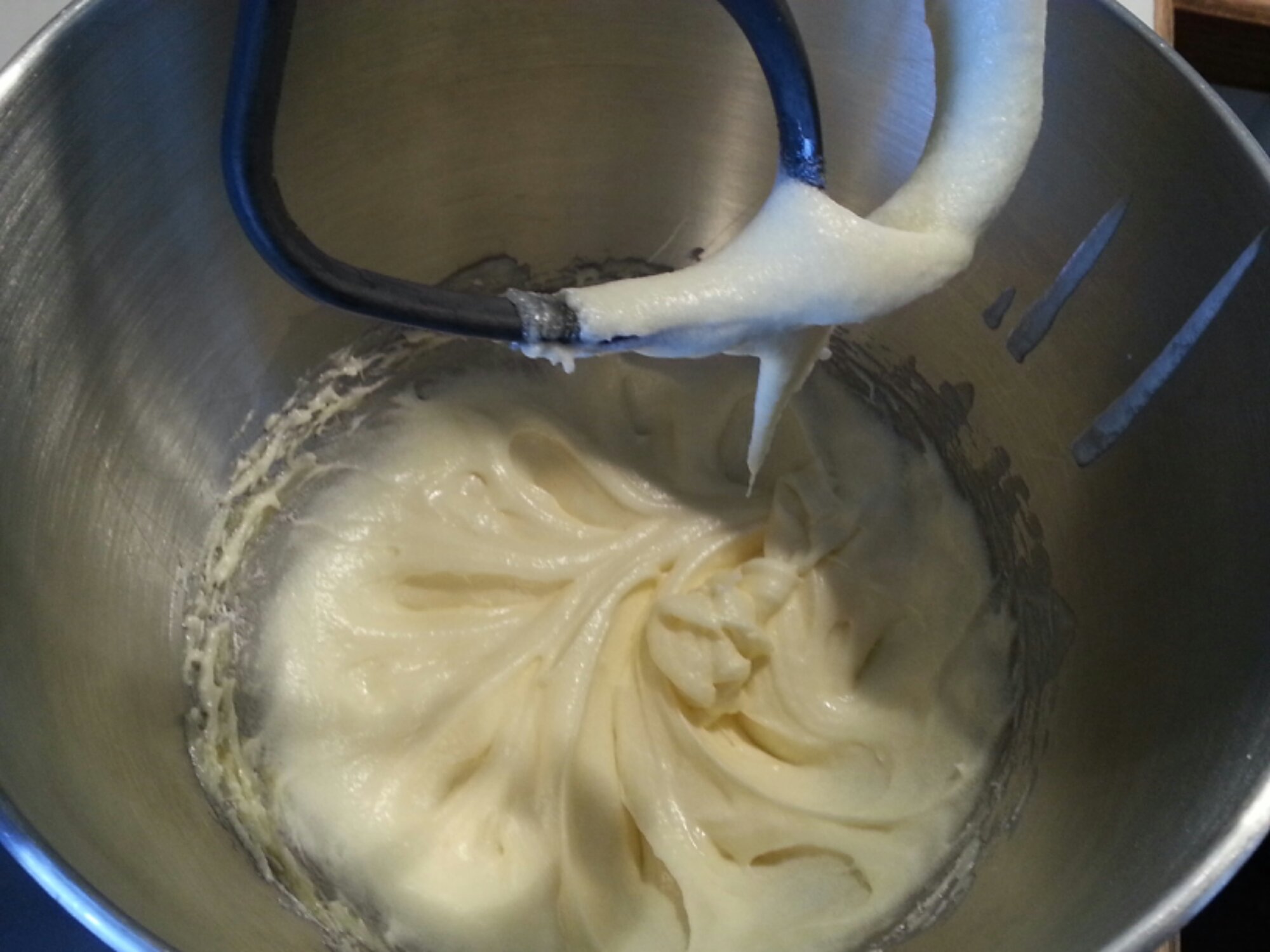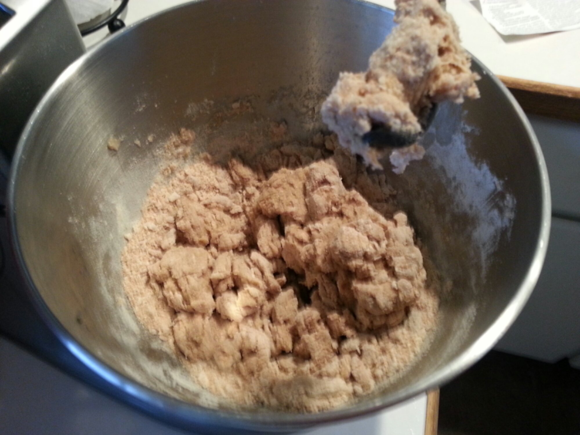 Add all dry ingredients: flour, salt, baking powder and soda, cinnamon, nutmeg, and allspice. Cream well.