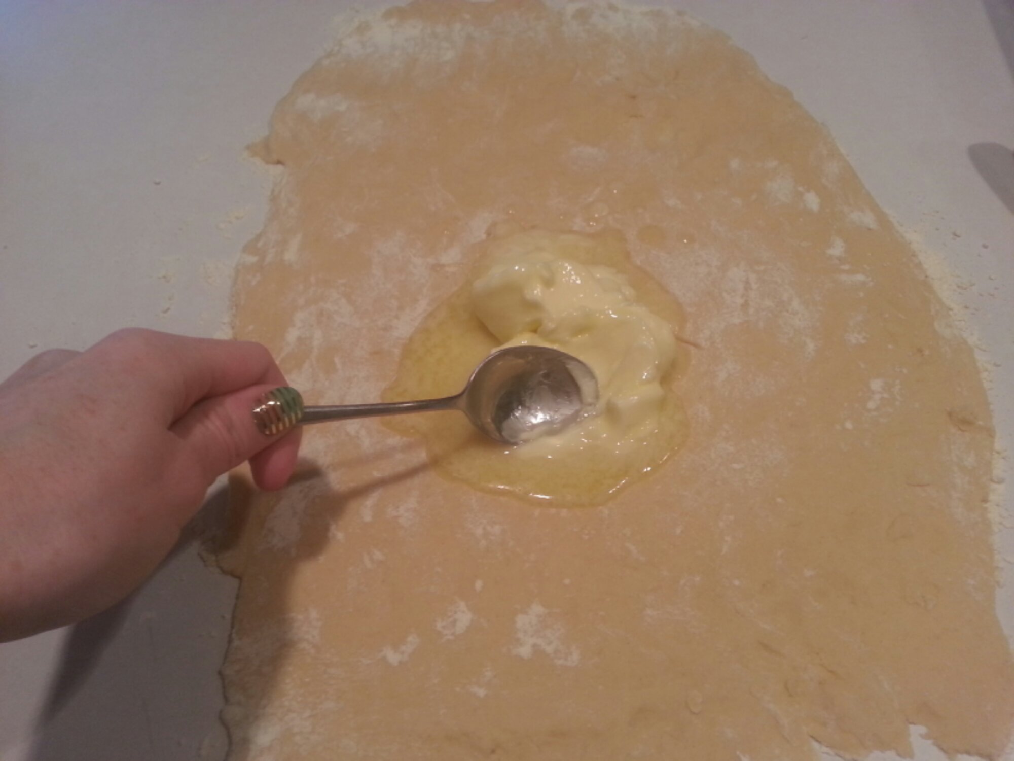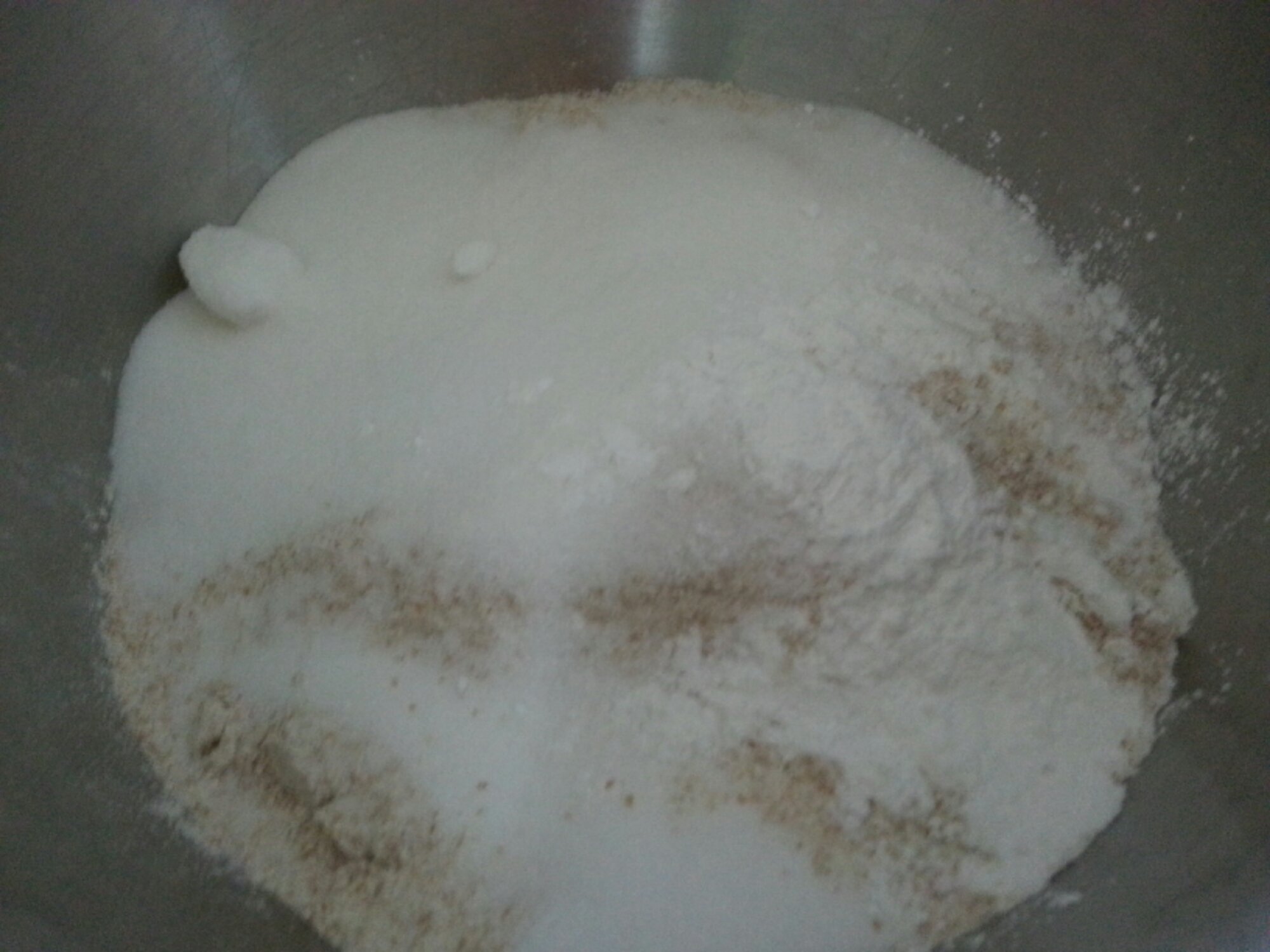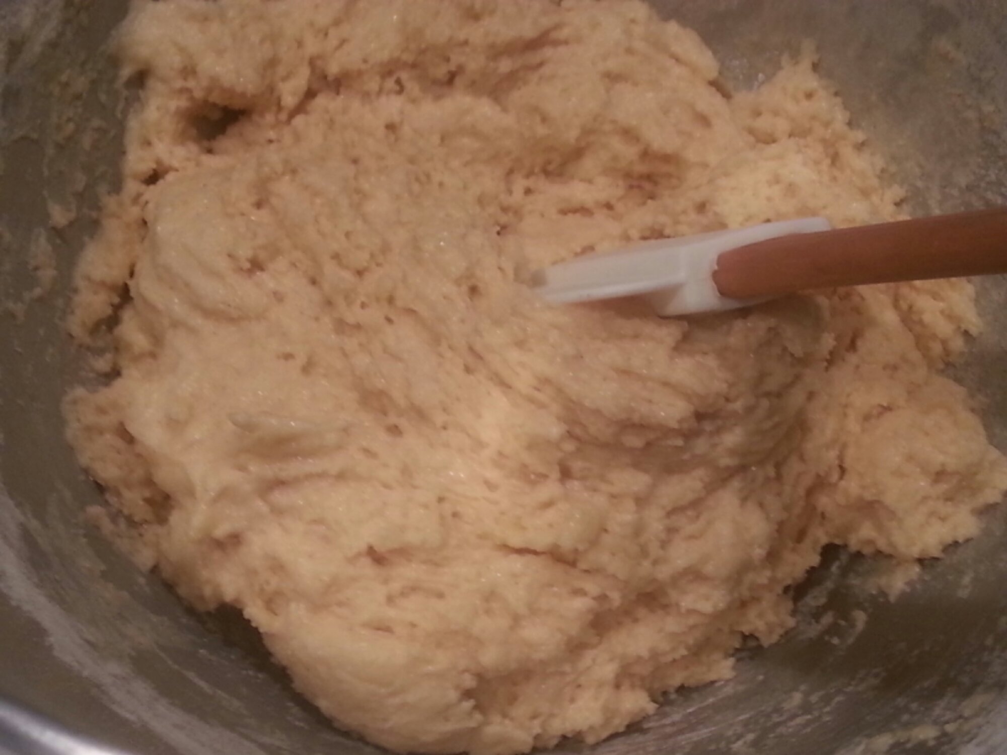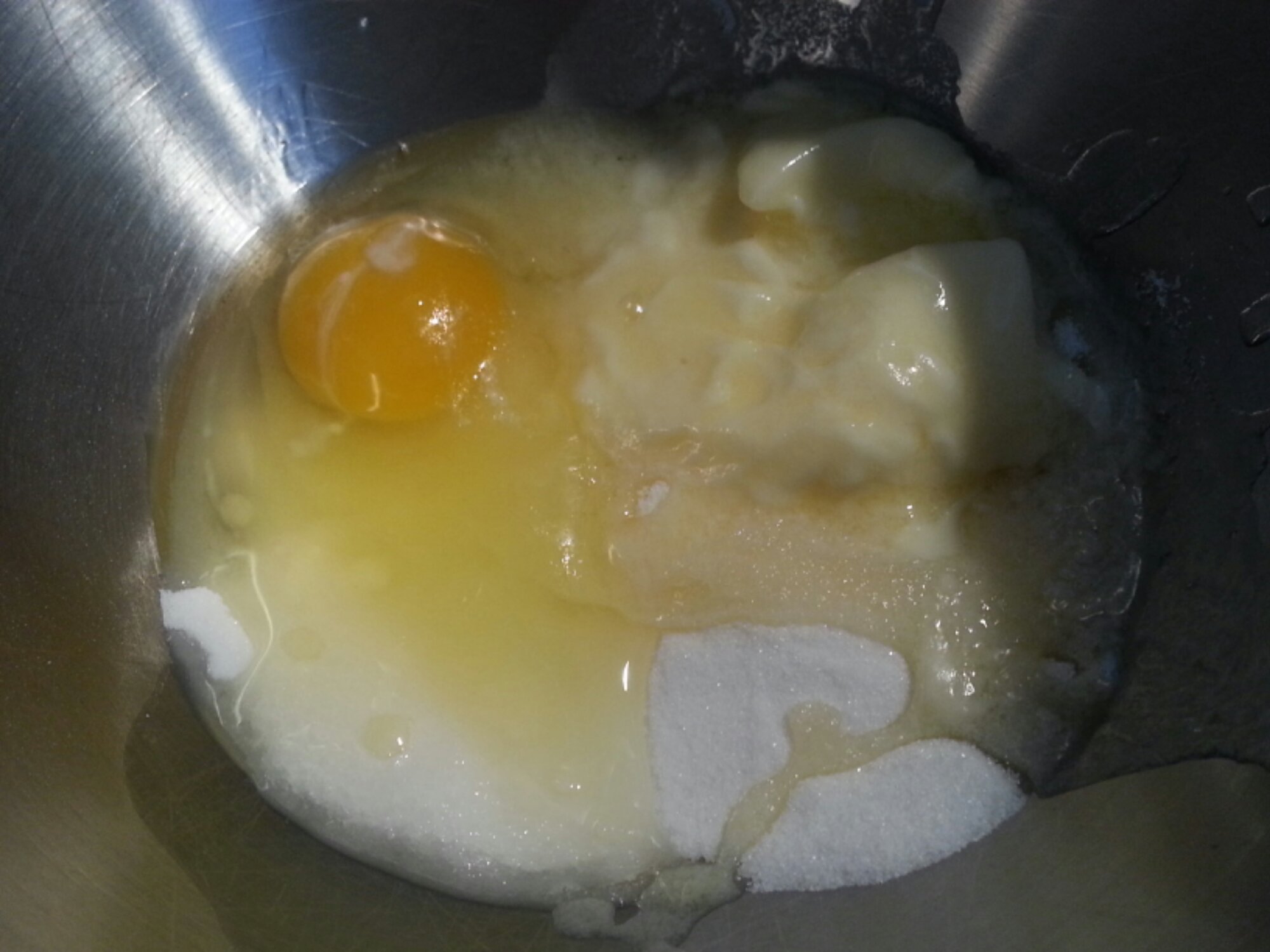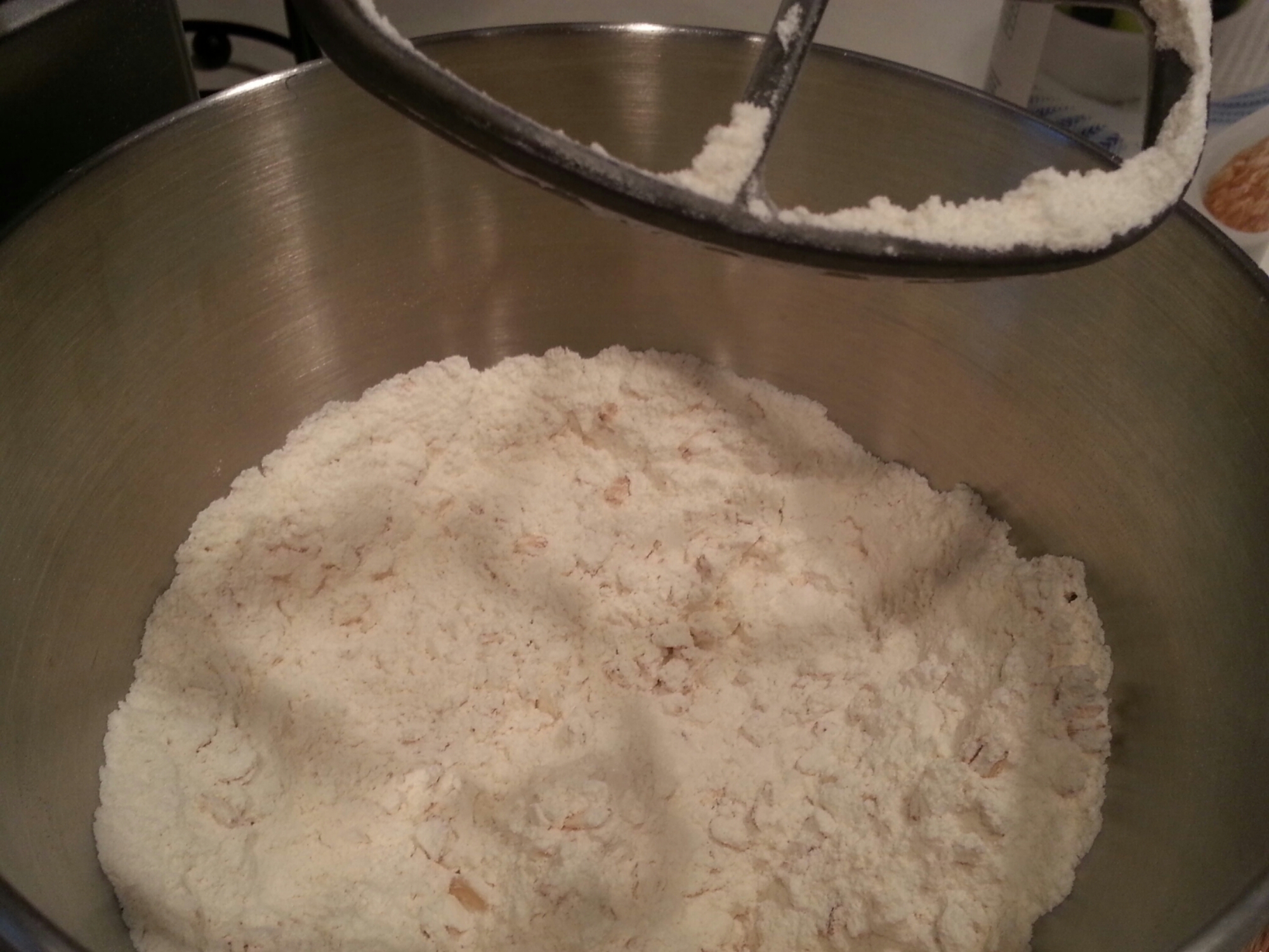 Add all dry ingredients: flour, salt, baking powder and soda, cinnamon, nutmeg, and allspice. Cream well.
