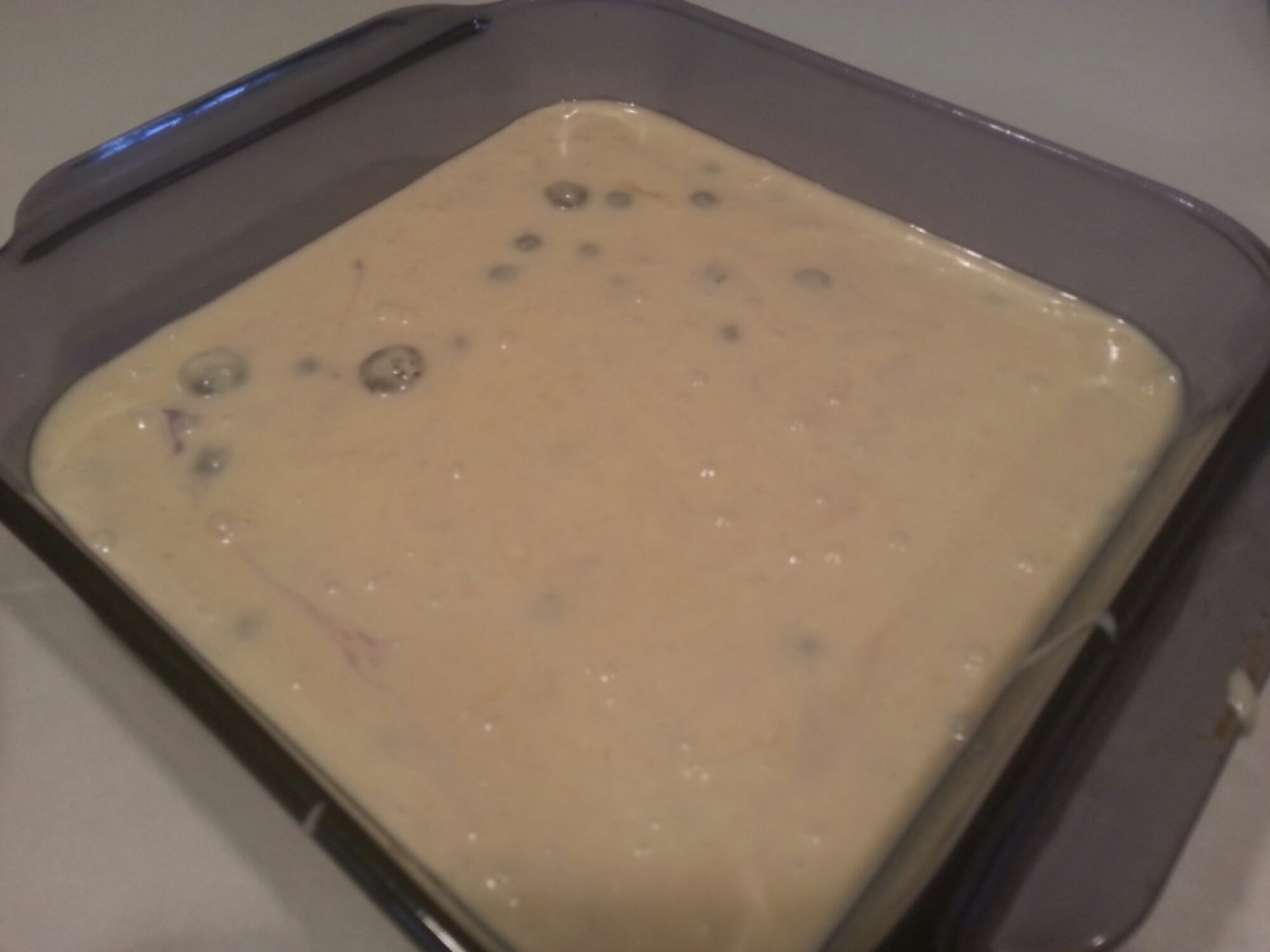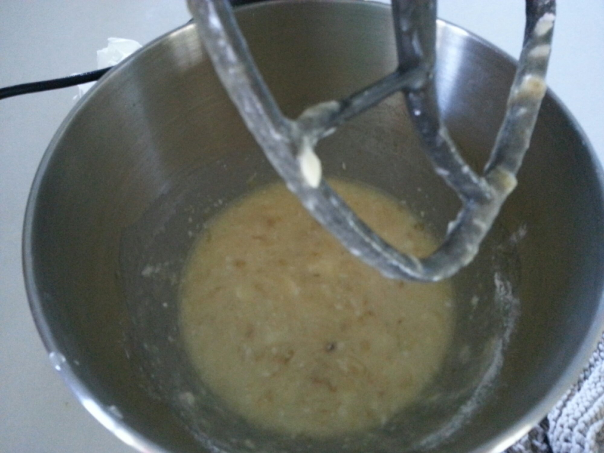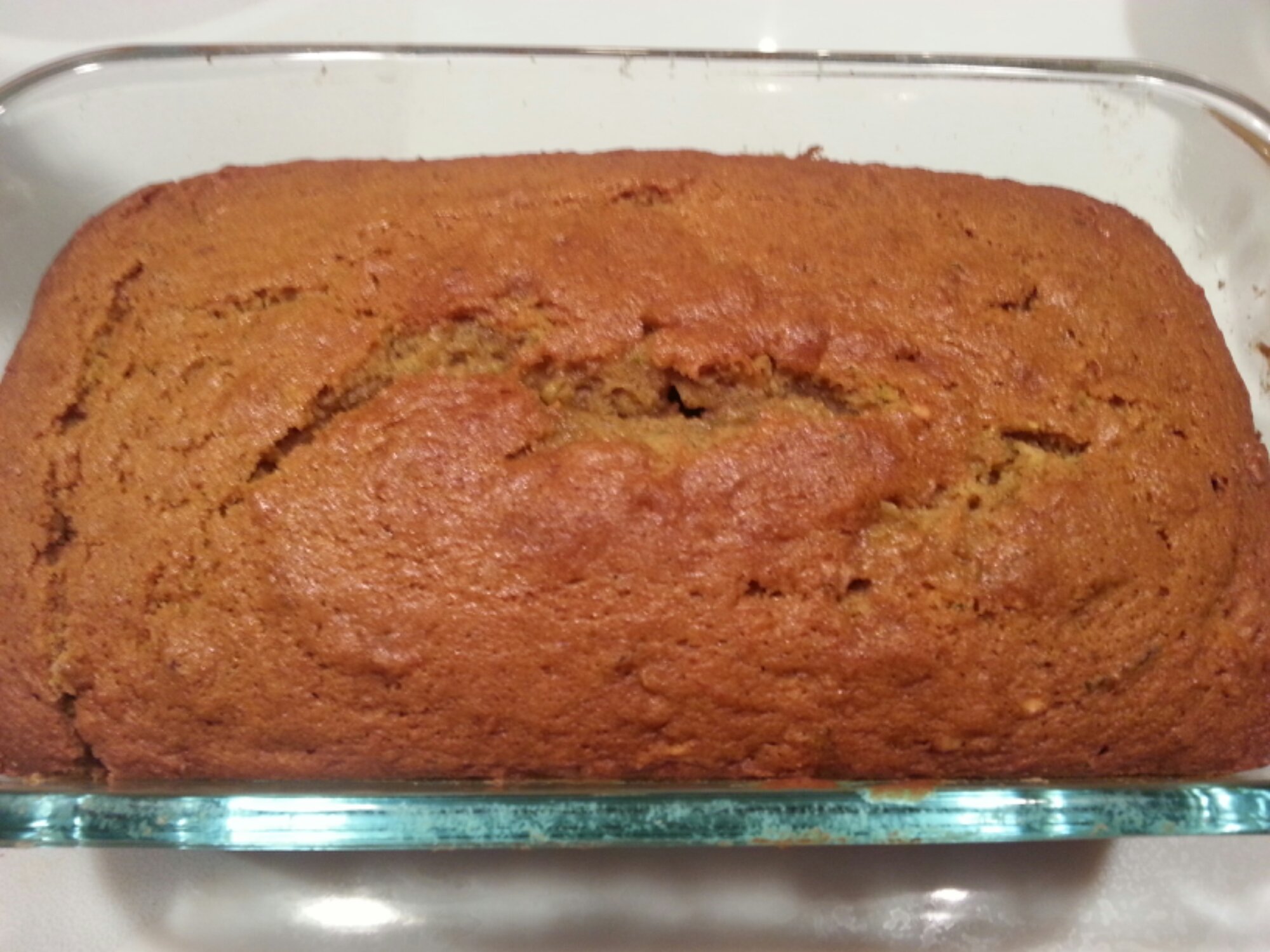 In two greased bread pans evenly divide the mixture and cook in the oven for 45-60 minutes depending how hot your oven runs. When a toothpick inserted comes out clean, your bread is done!