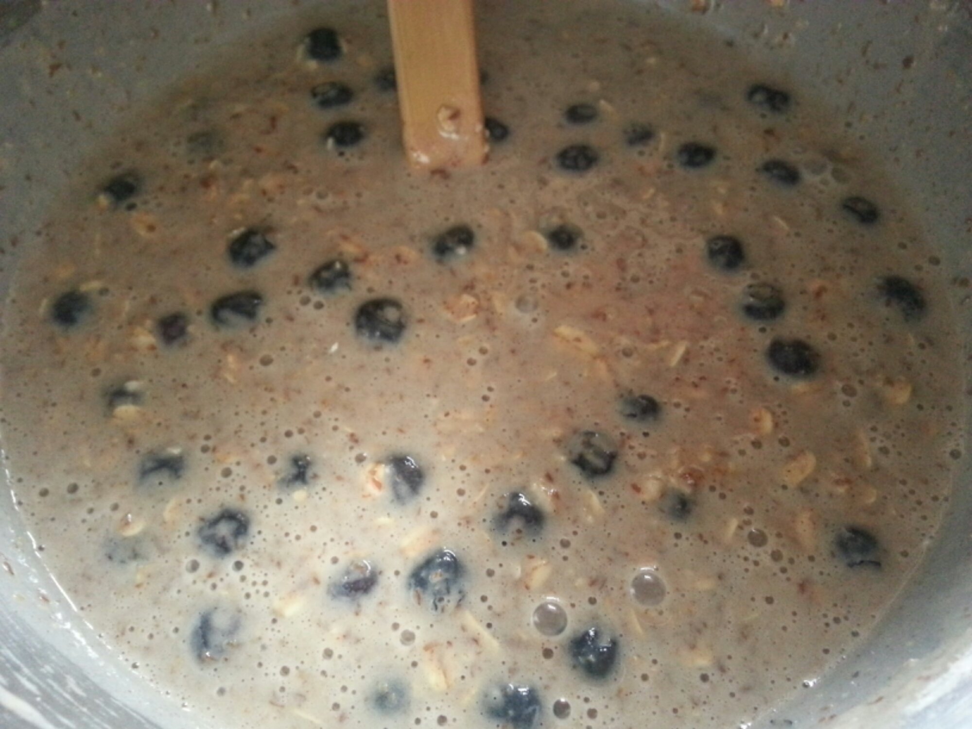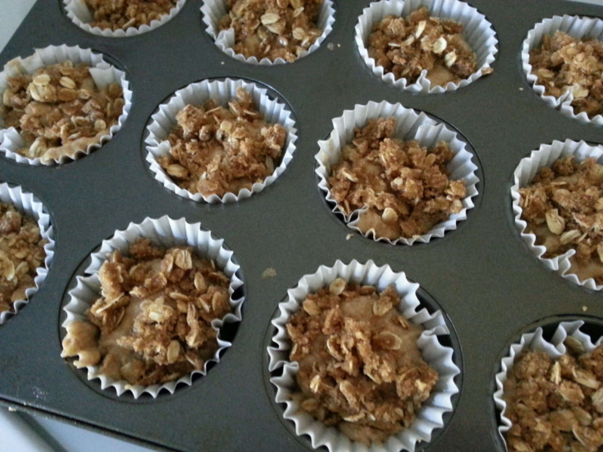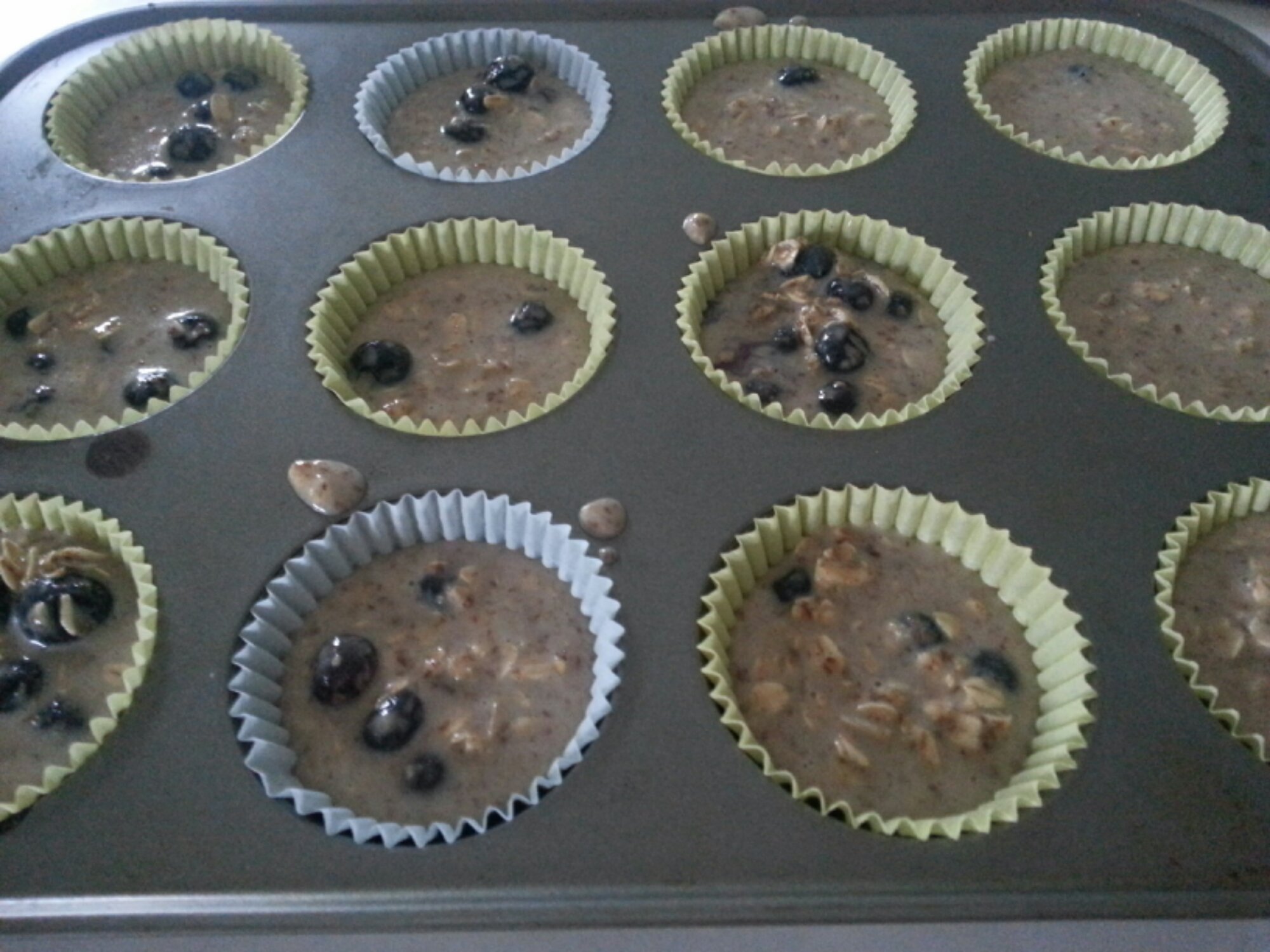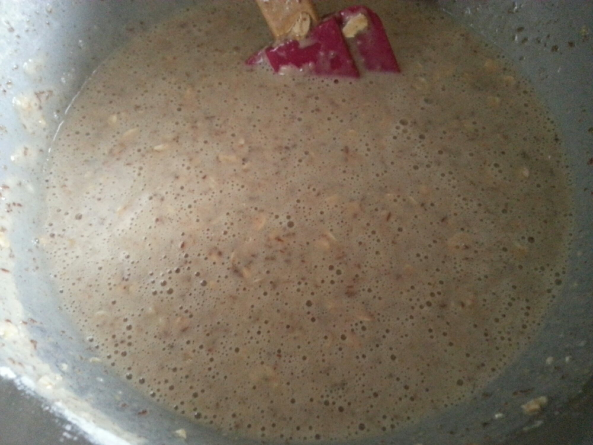 In two greased bread pans evenly divide the mixture and cook in the oven for 45-60 minutes depending how hot your oven runs. When a toothpick inserted comes out clean, your bread is done!