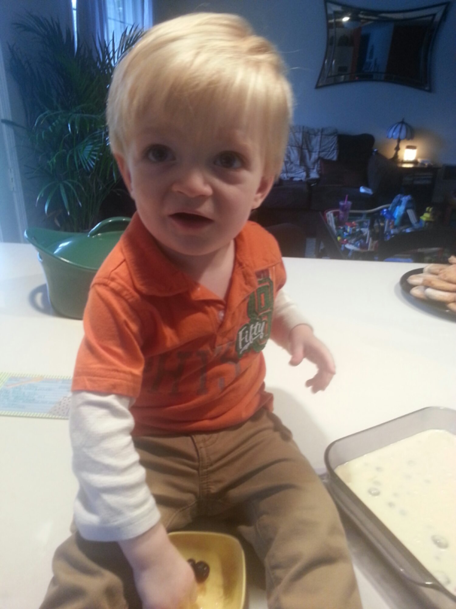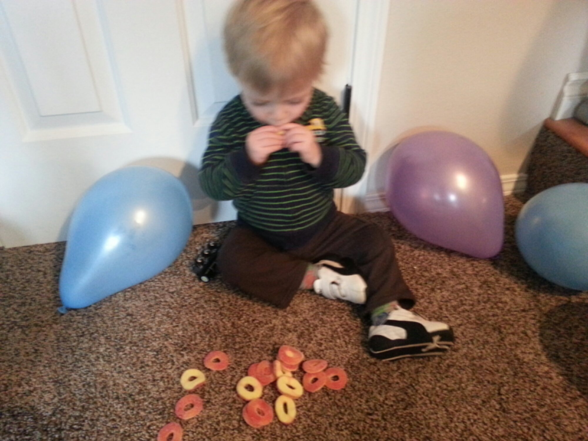 Now that I rescued my little man from this choking hazard I gave him lunch with some Peach O’s for dessert. :) He deserved it!