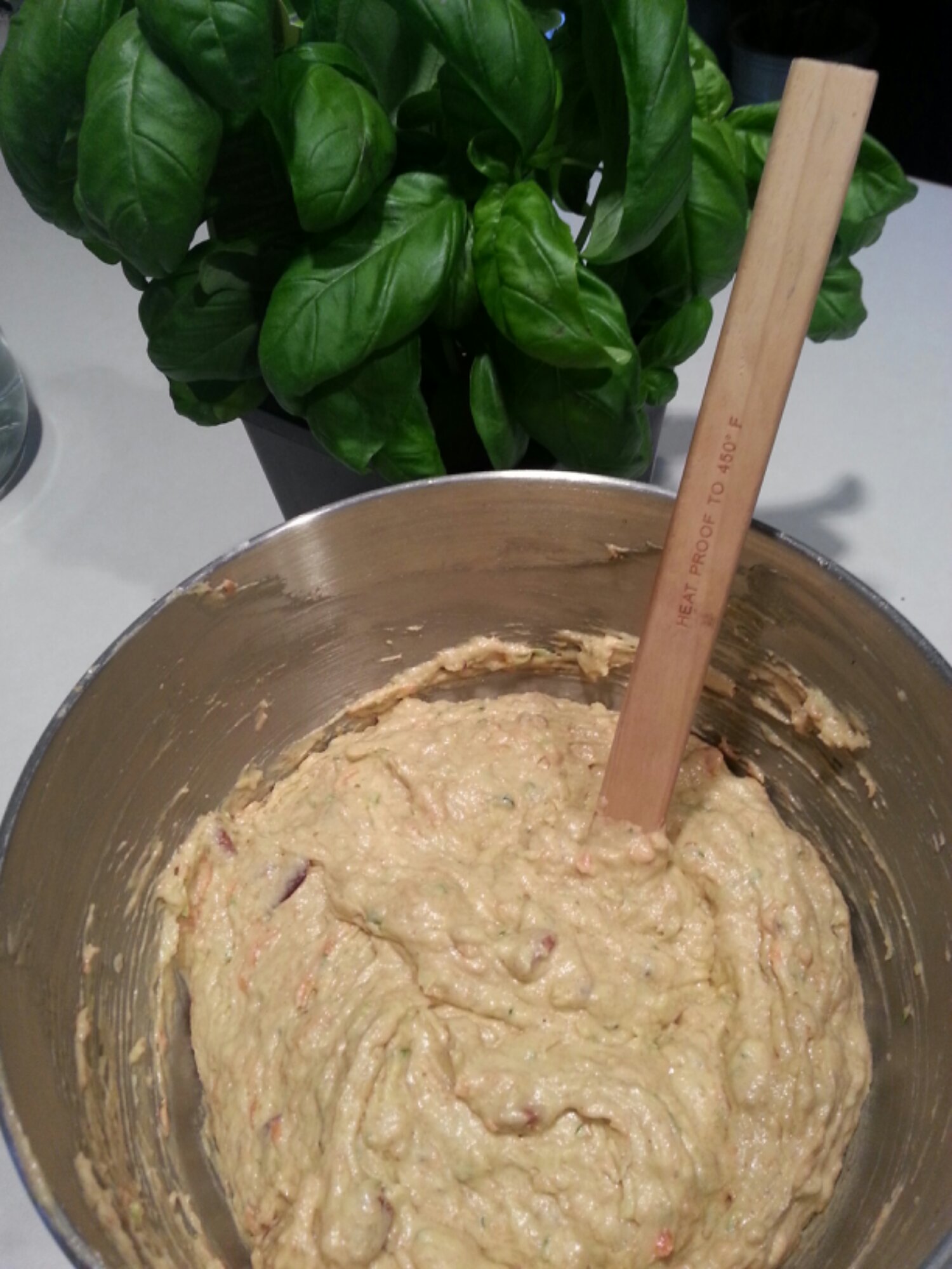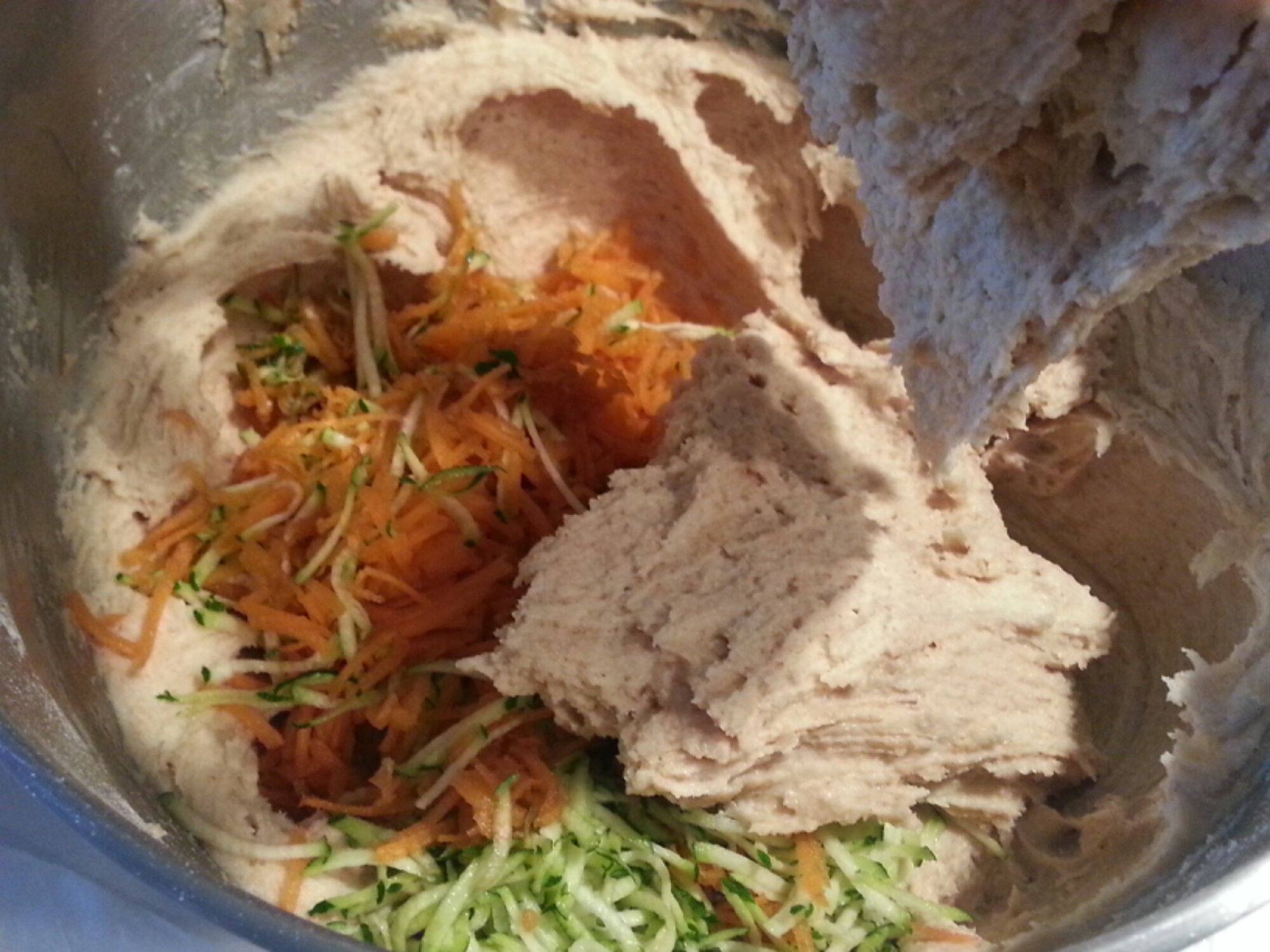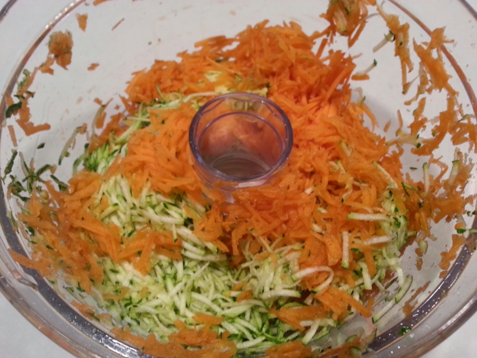Meanwhile, in a food processor shred carrots and zucchini. (This makes for an easy step)