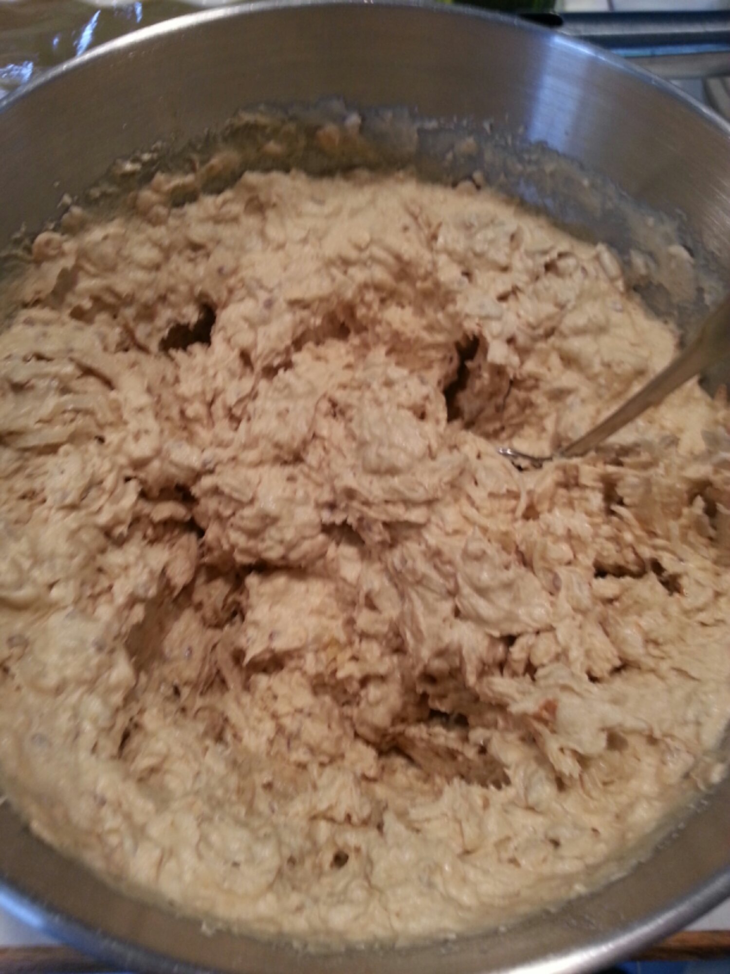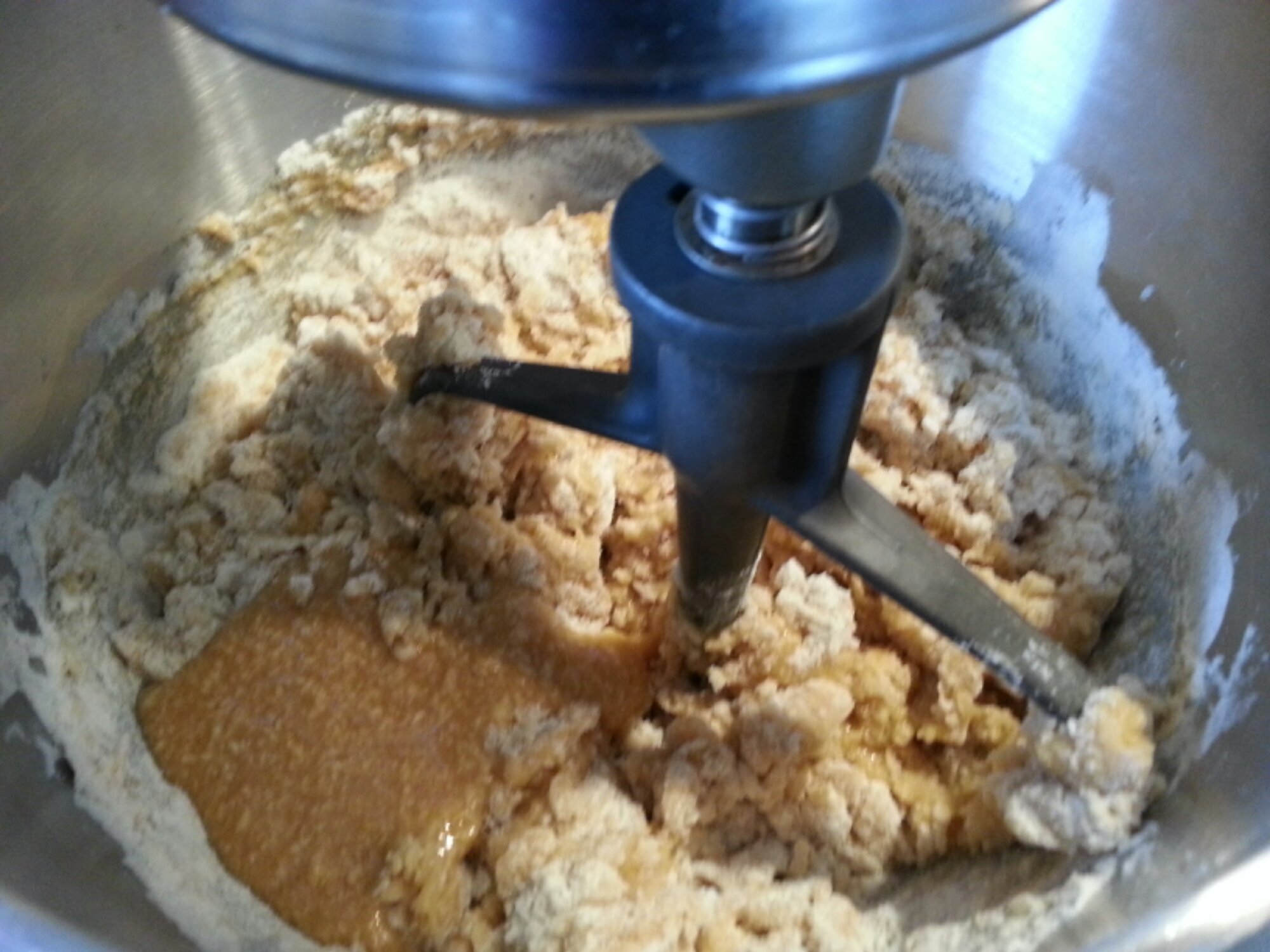 - In mixer beat together butter (applesauce or coconut oil), honey and peanut butter for 2-3 minutes or until fluffy. Add eggs one at a time, beating well between each addition. Beat in vanilla.