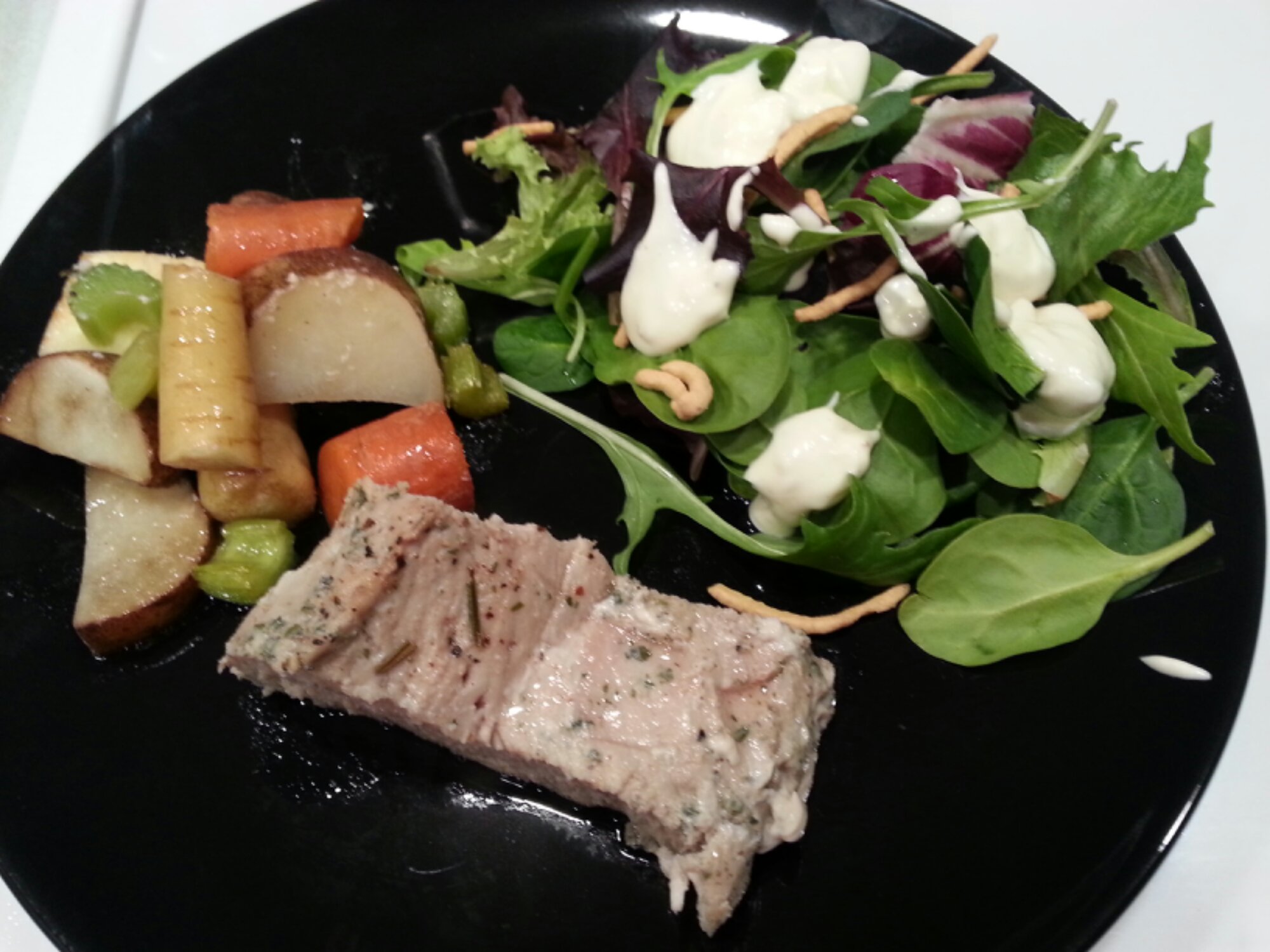 Serve with asparagus and fresh fruit; mango, pear, oranges and grapes.