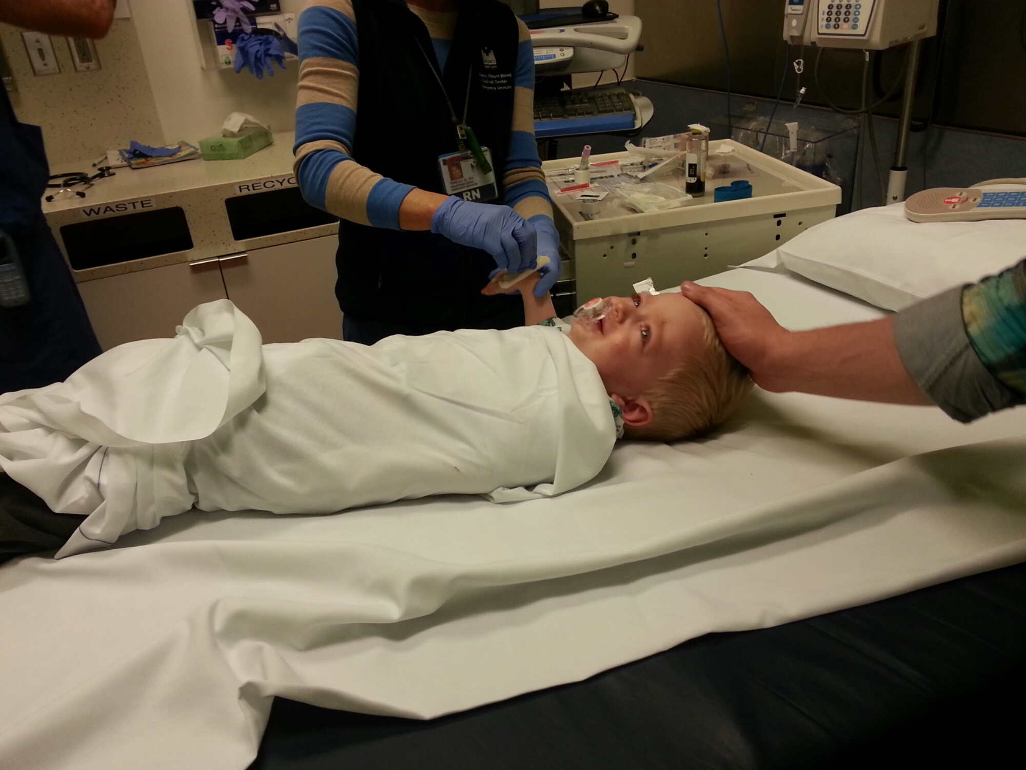 Three days ago we went into Randall’s Children’s Hospital here in Portland, OR. My son was supposedly sick with pneumonia and an ear infection and had a fever for 4  days. Mind you, he is 21 months old and a fever that long is dangerous.