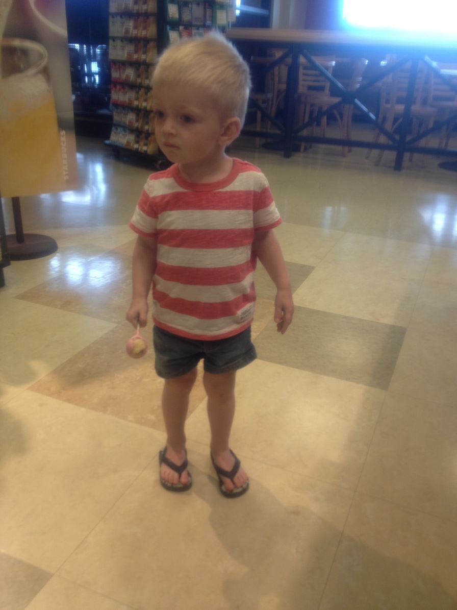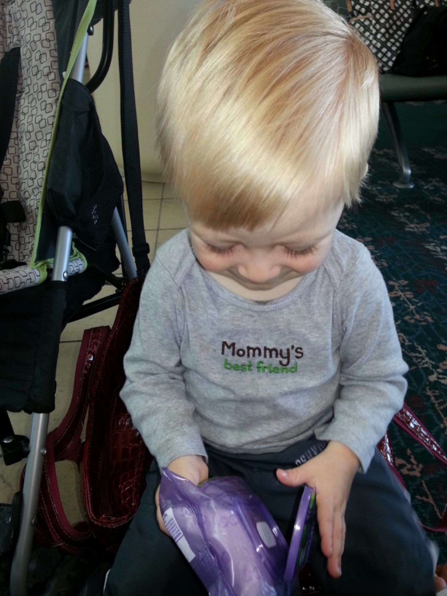 Here he is in one of the many airports happy and playing.