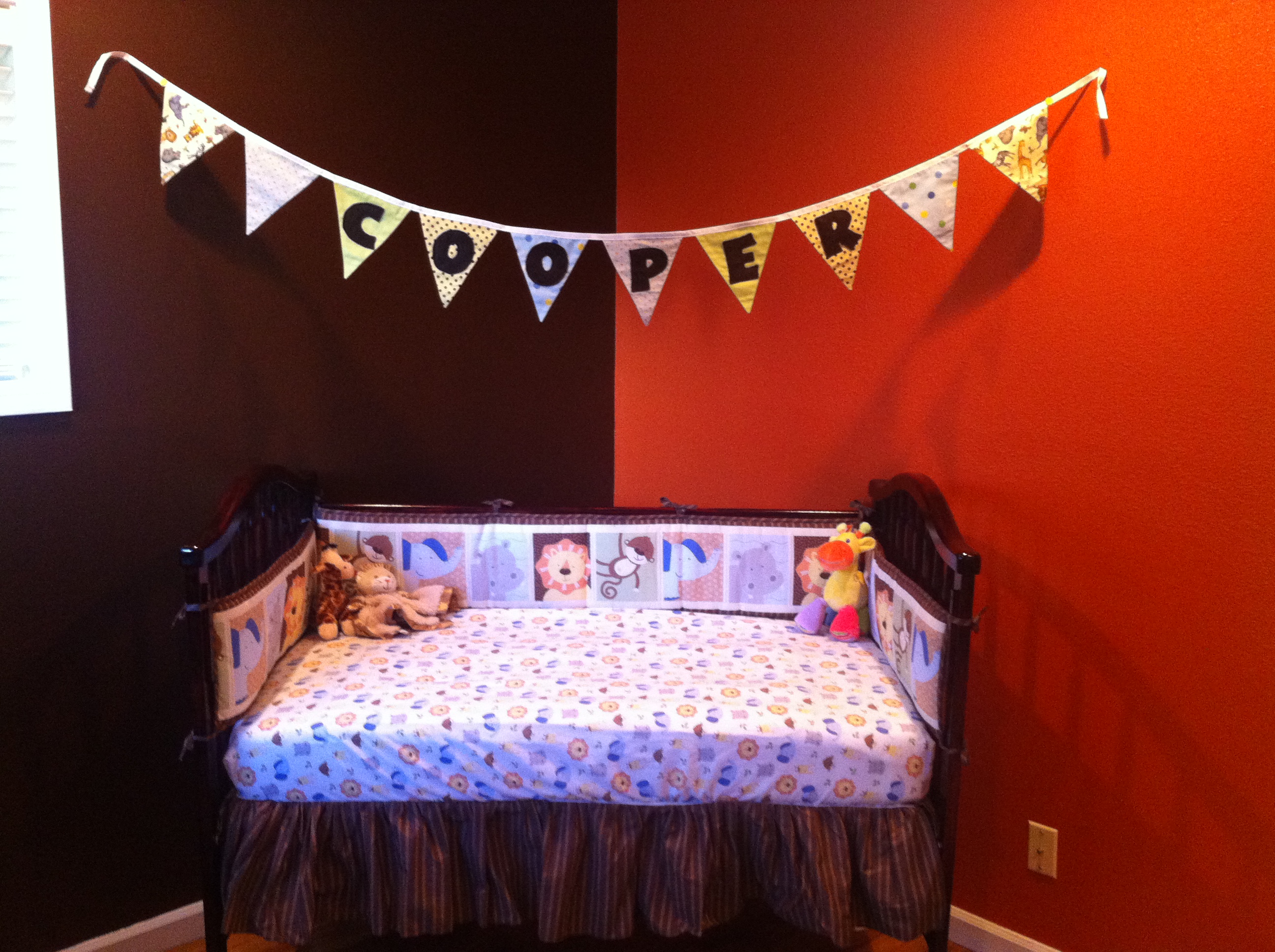 Haven’t we all heard the grumbling that babies don’t cost anything the first year? I truly believed that statement when we had our little munchkin. But let’s back up a bit; around the second trimester we really began shopping around for the nursery; we had nothing considering this is our first time around. I started gathering ideas for the nursery and ended up loving Noah’s Ark theme. I registered for baby showers at Babies R Us and thoroughly enjoyed the look of Noah’s Ark. I wanted to branch out a bit and go for a different theme and color since so many baby boy rooms are blue. I landed on orange and brown with a bunch of cute little zoo animals.