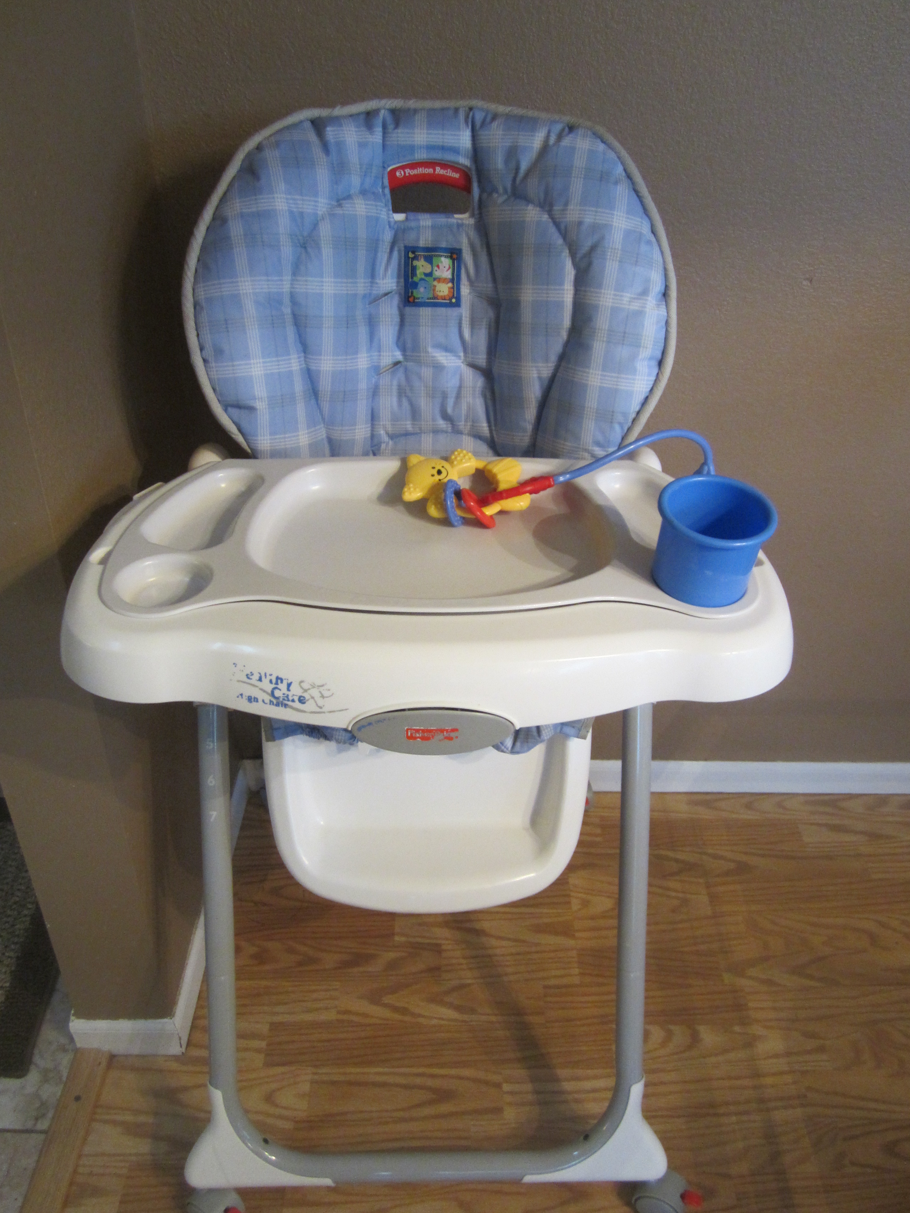 The highchair also looks brand new. The current highchair we had is cute but also 11 years old. I got it from my sister who has an eleven year old and we have passed this through the family. It actually is in great condition but this new one is super cute and has Cooper’s little animals on it. There are also little wheels that allows it to move a lot easier, and it has a cute little clip that you can attach toys to and outsmart your child. Now when Cooper attempts to throw toys off the side of his highchair they will only dangle down and mommy does not have to give in to this little game he plays. :)