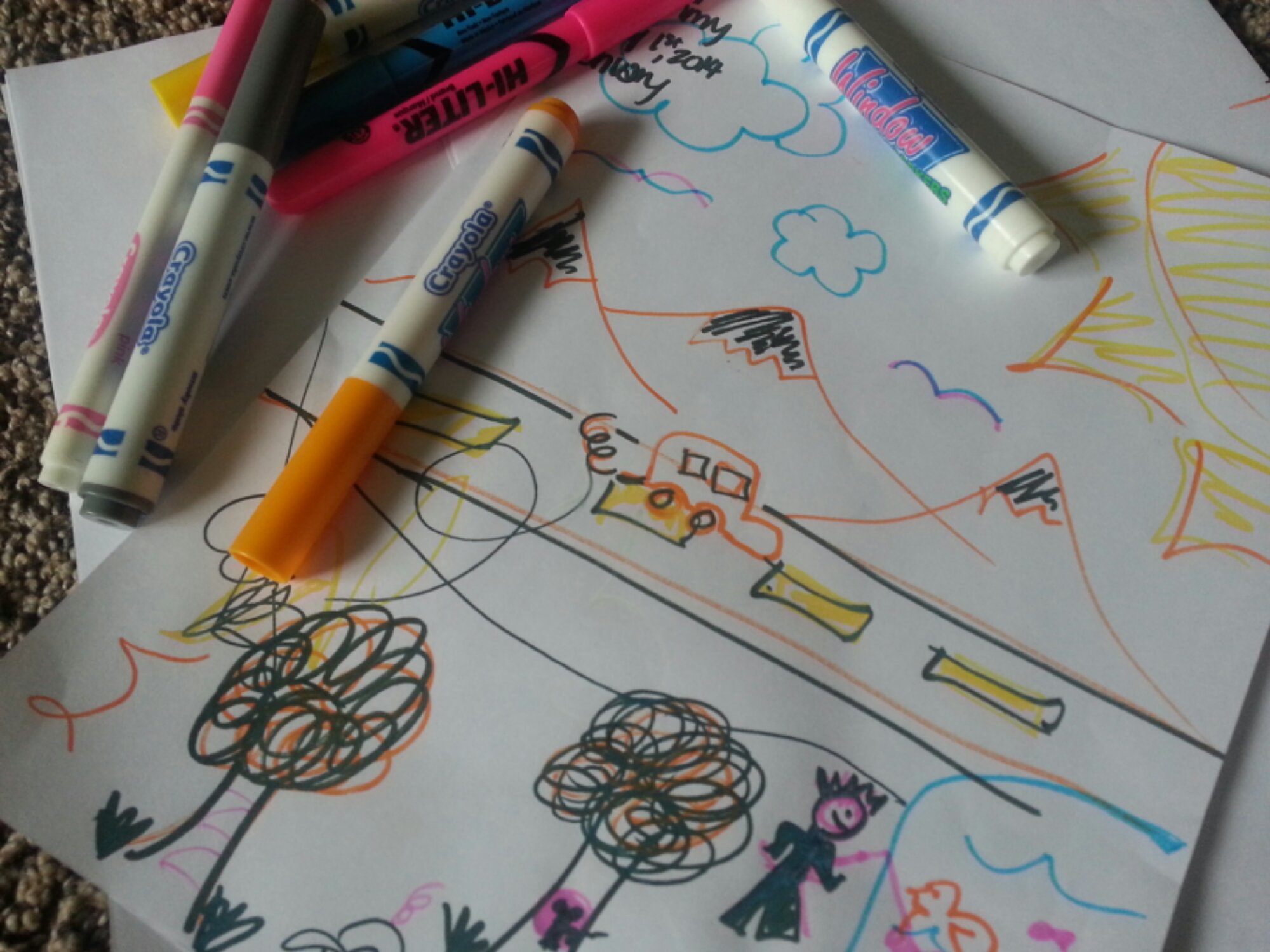 - Coloring: Cooper enjoys scribbling and most of all putting the cap on and off. I try and draw a picture and explain what I’ve drawn; sun, water, birds, grass, trees etc.