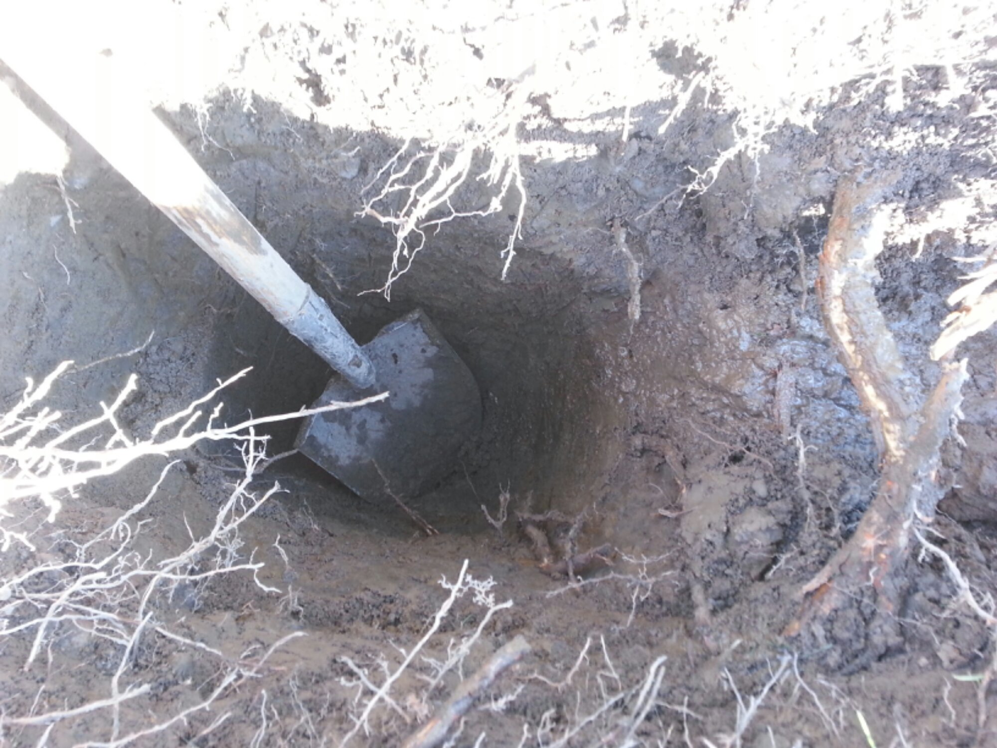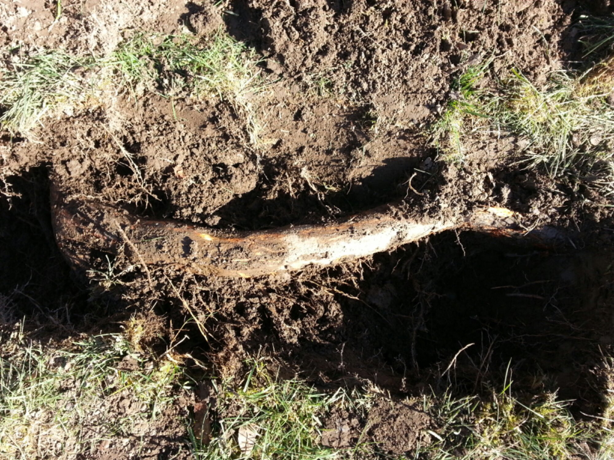 Here’s the first small tree I ran into with the very first pull of the shovel….