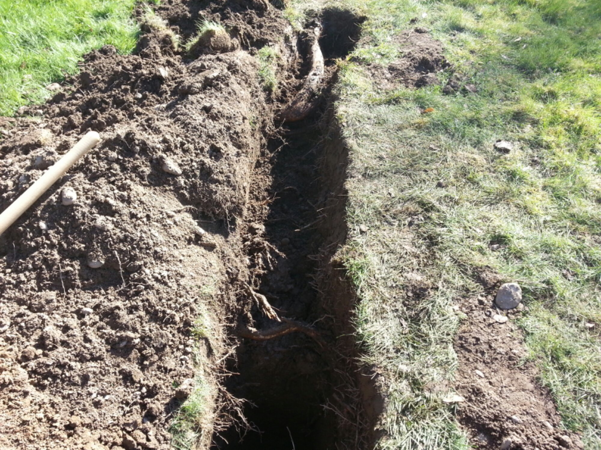 Little did I know that digging ditches was a part of my future. I was really uptight about digging our French drain and having done so I have come to realize that was easy as pie compared to the new ditch I’ve been hacking at. I say “hacking” as digging seems to be limited while trying to hack at the rocks or shall I say boulders and the massive trees that are growing underground.