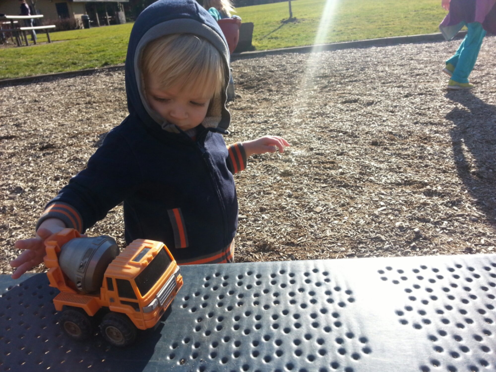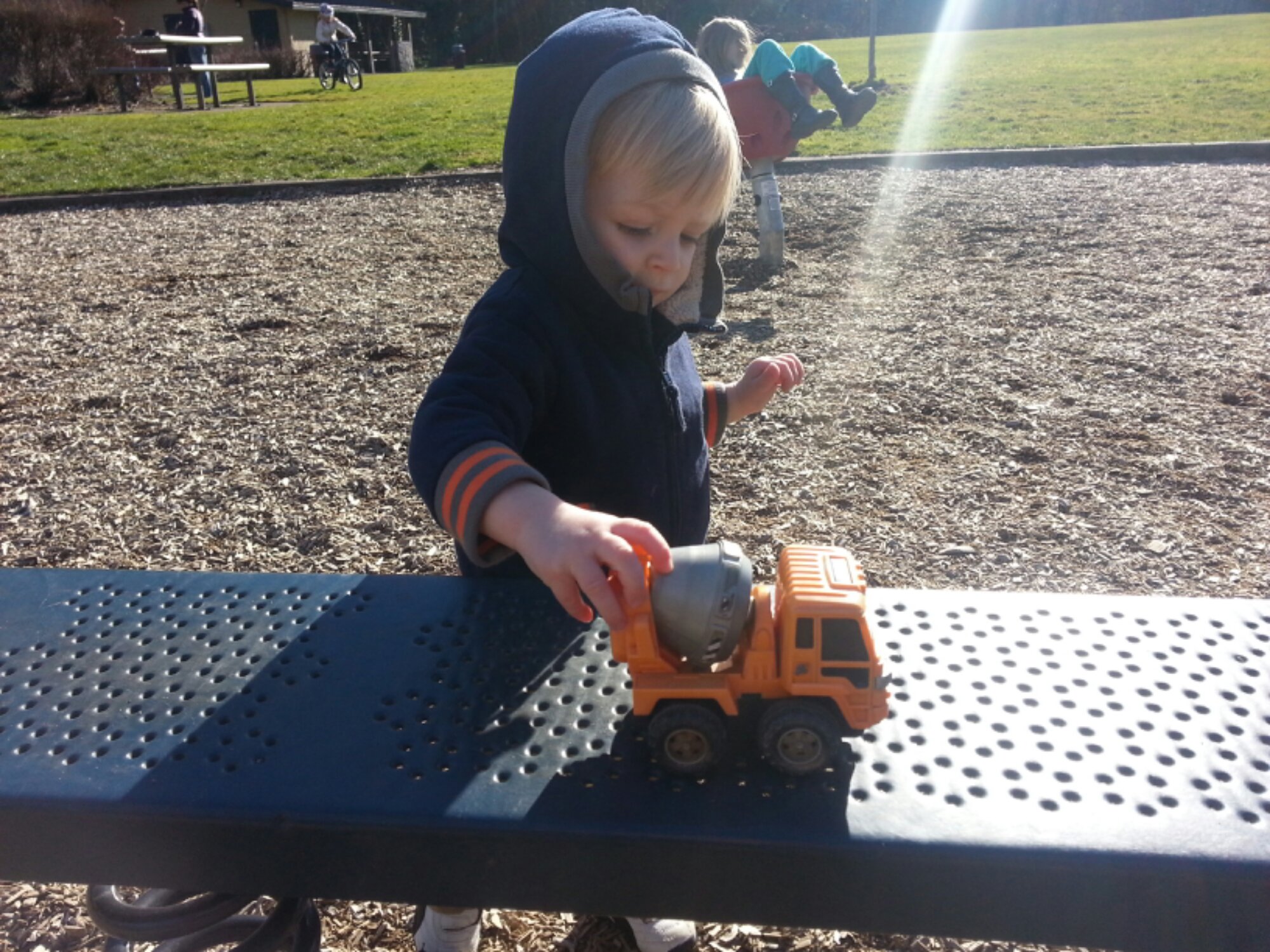 Even at the park when there are so many options to choose from he still gravitates towards the trucks…