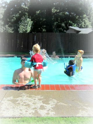 And of course, the pool took precedence with all the boys in the house… Not a single gal to spare other than us two mamas.
