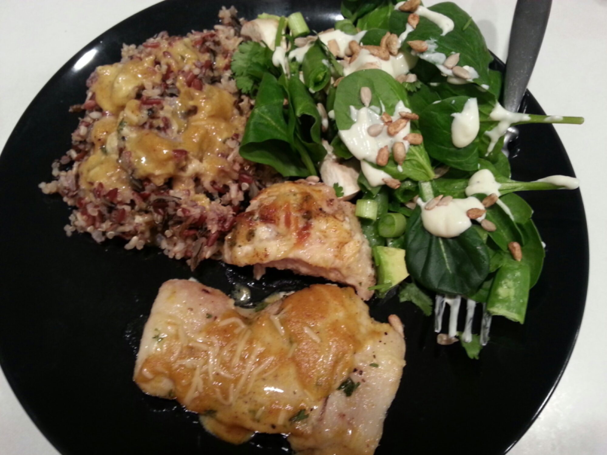 Tonight I served this on a bed of rice with some teriyaki sauce and grilled romaine hearts.