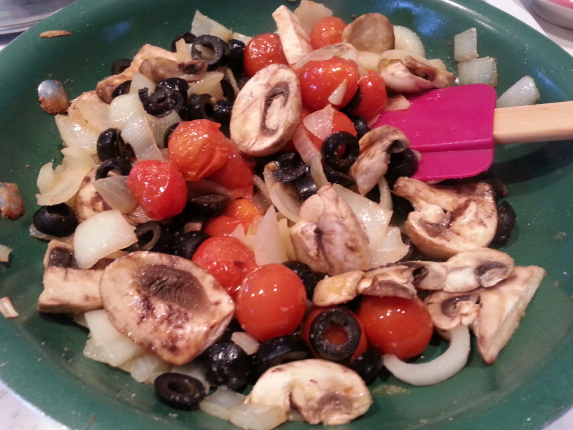 When the tomatoes begin to burst add the mushrooms.